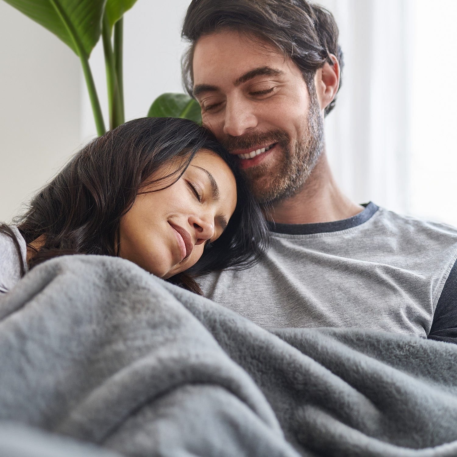 Elle mesure 200 x 150 cm, ce qui la rend idéale pour deux personnes — parfaite pour partager la chaleur sur le canapé ou au lit.